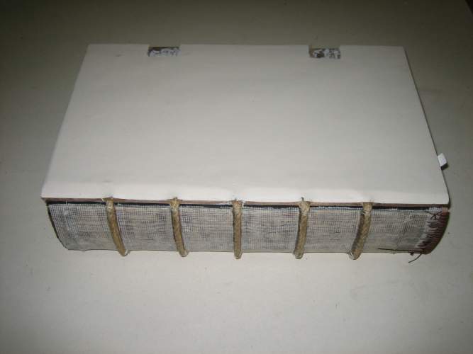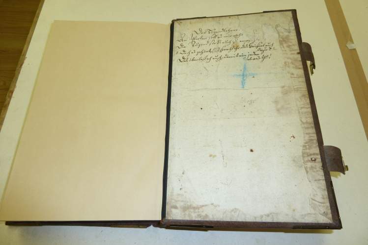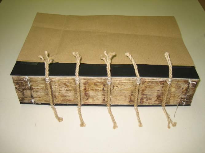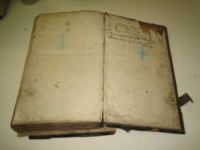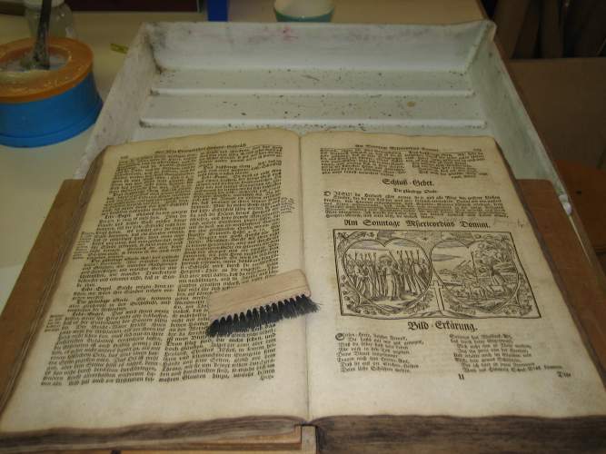 Das großformatige Buch war vor längerer Zeit schon einmal repariert worden.