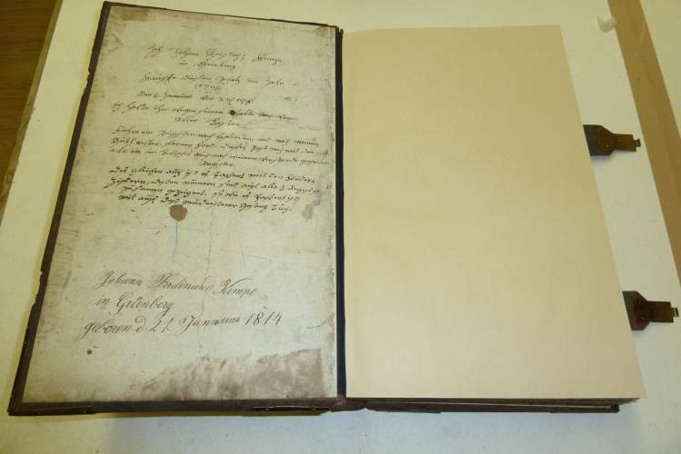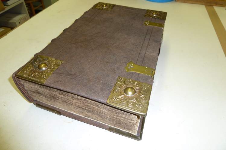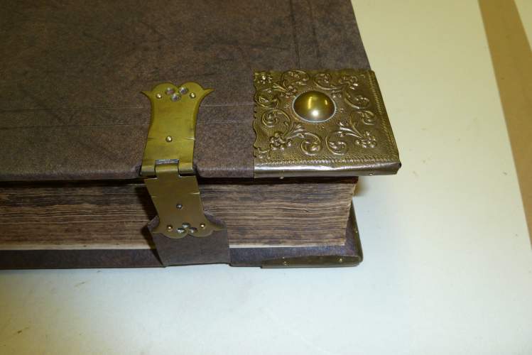 verwendet. Neben dem Buchblock waren noch acht originale Messingecken vorhanden, die jedoch falsch