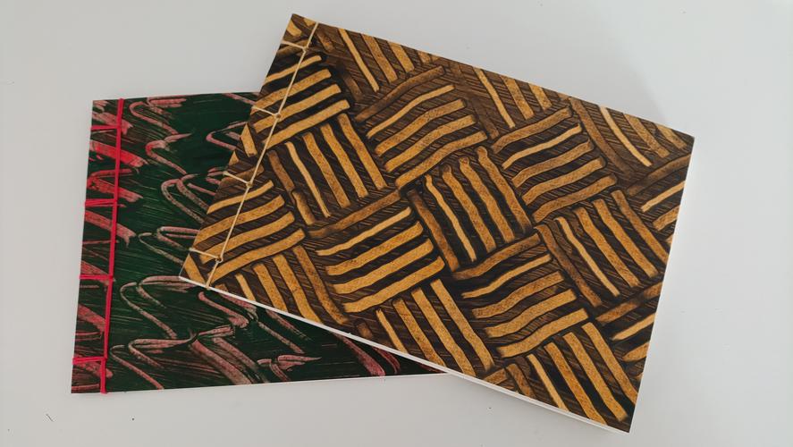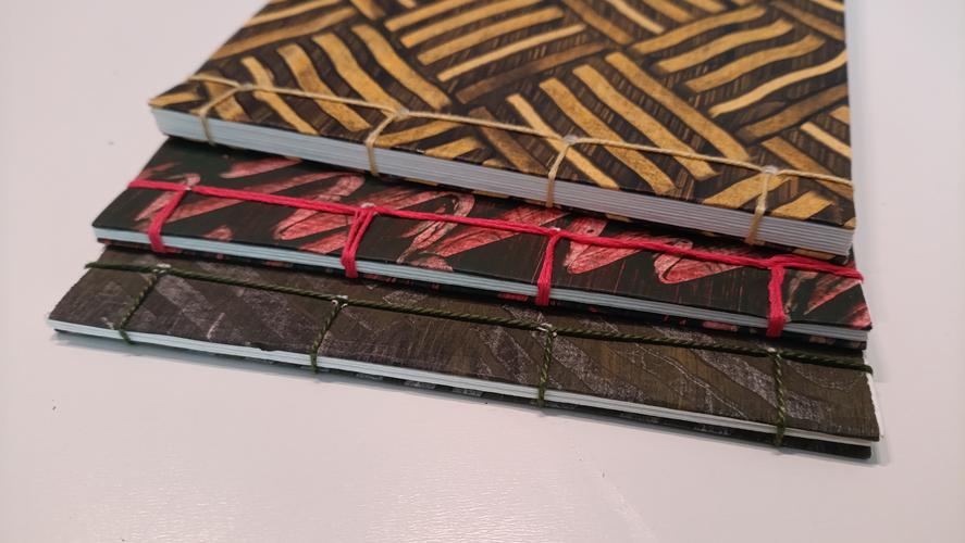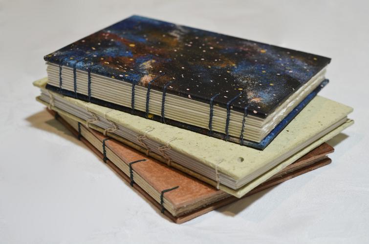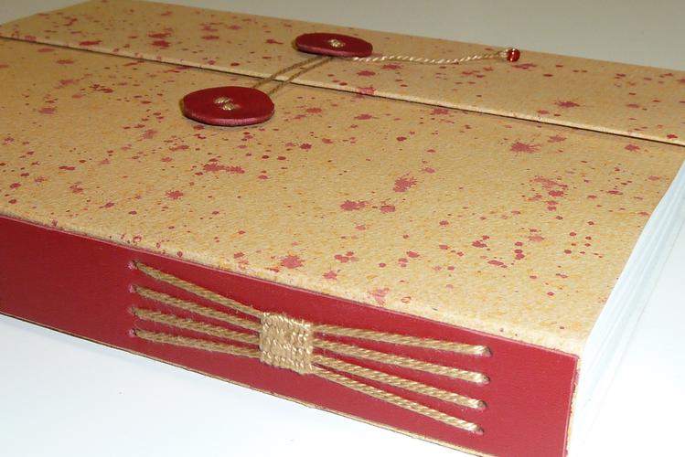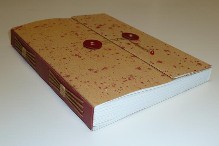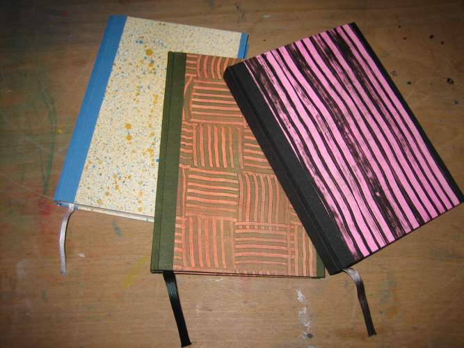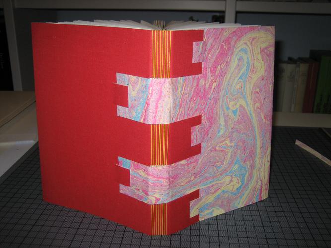 Varianten kennen und binden Ihr Buch in selbstgemachtes Buntpapier.