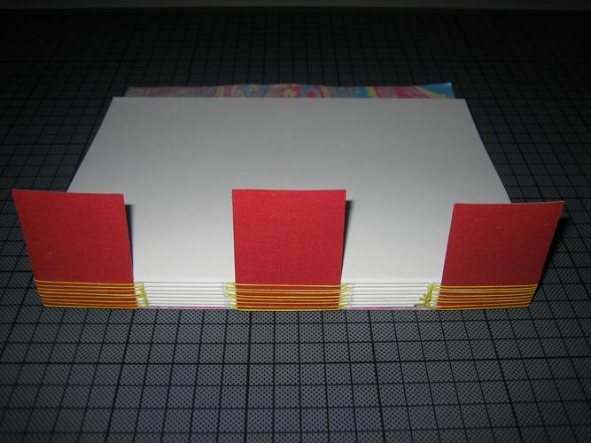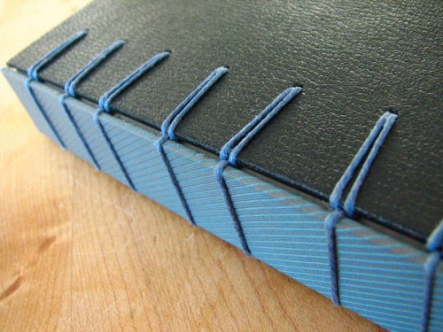 mit meist sichtbaren Heftfäden und ohne Leim verbunden.