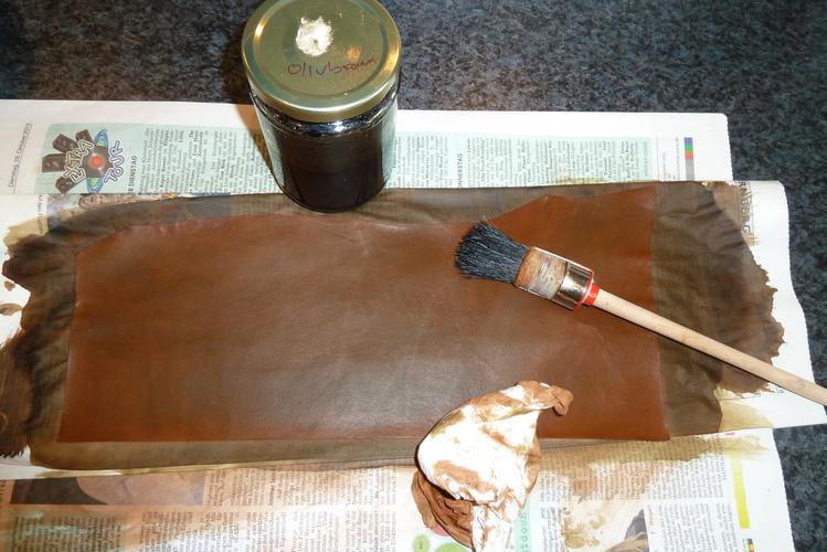 des Einbandes farblich wieder anzugleichen wurde er vorsichtig nachgefärbt und eingefettet.